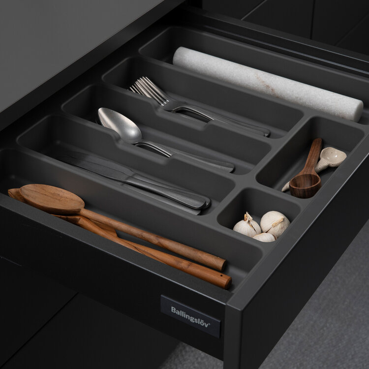 Insatsfack 600 i grå plast, djup 500, till låda Atira