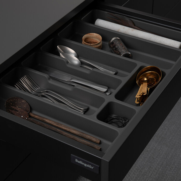 Insatsfack 700 i grå plast, djup 500, till låda Atira